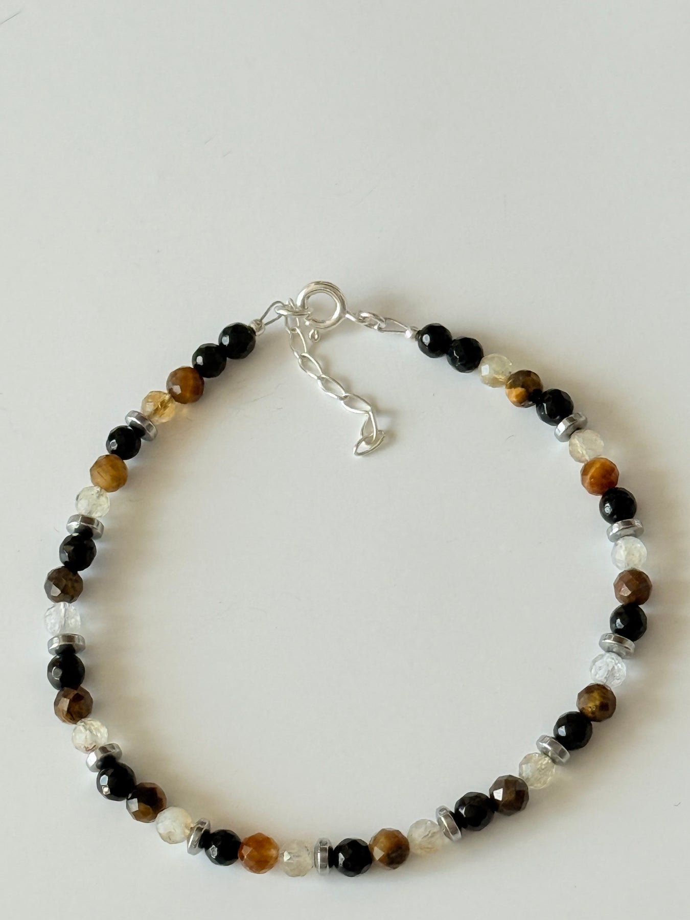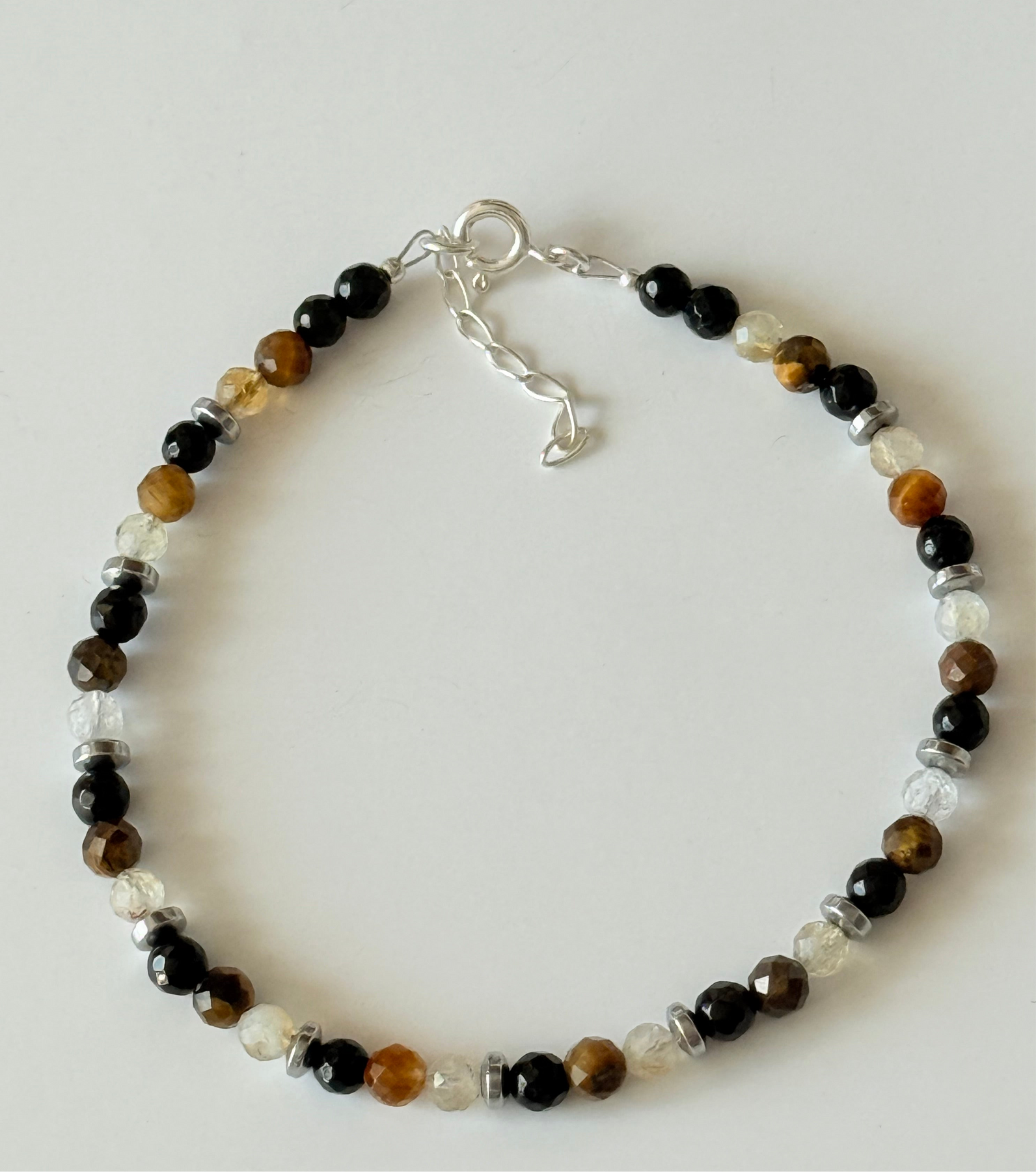 O bijuterie masculină cu forță și prezență, creată special pentru zodia Leu. Brățara este realizată manual din pietre naturale – Onix, Hematit, Citrin și Ochi de Tigru – alese pentru a amplifica puterea personală, protecția energetică și încrederea. Perfectă pentru bărbatul Leu care dorește să-și exprime curajul, ambiția și energia de lider.