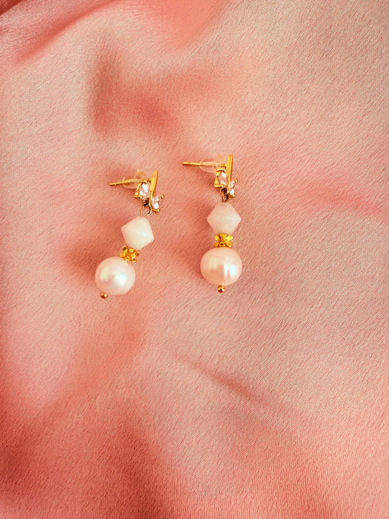 Cerceii Mayris GEMS, realizați manual din Cupru, Piatra Lunii și Perle Naturale de Cultură, sunt un accesoriu delicat și sofisticat, simbol al feminității, intuiției și echilibrului emoțional. Piatra Luniieste cunoscută pentru energia sa mistică, conectată cu ciclurile lunare și feminitatea, în timp ce Perla Naturală simbolizează puritatea, rafinamentul și eleganța atemporală. Designul elegant în formă de fundiță adaugă un plus de grație și finețe, fiind potrivit atât pentru ocazii speciale, cât și pentru purtarea zilnică.