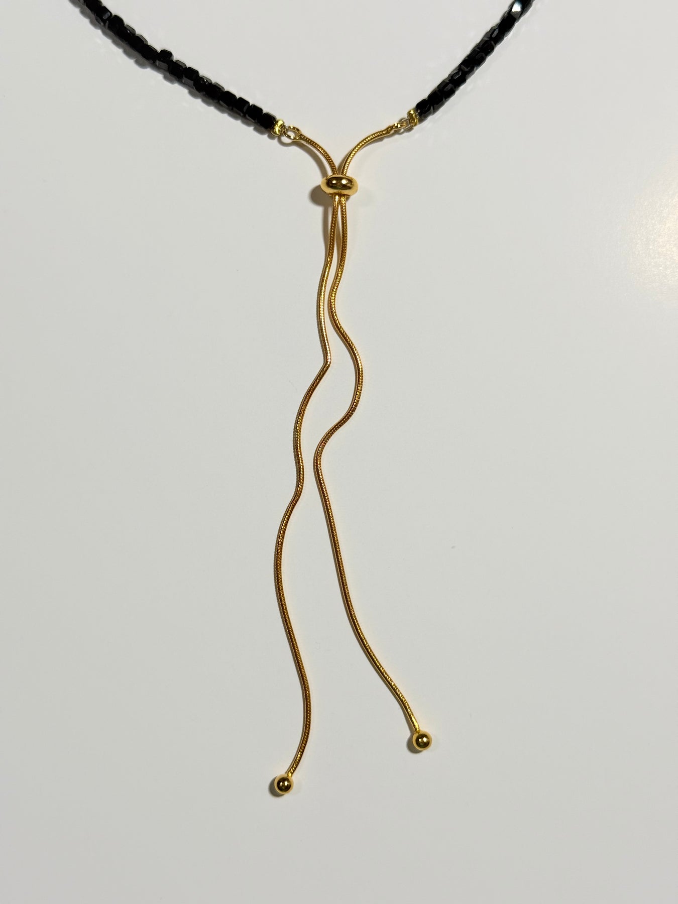 Descoperă eleganța protecției energetice într-un colier minimalist și rafinat. Lucrat manual din Turmalină Neagră naturală, cu mărgele cub fațetat de 3 mm, acest colier este prevăzut cu un sistem de glisare reglabilă, pentru o purtare versatilă și confortabilă. Accesorizat cu argint suflat cu aur, colierul îmbină frumusețea discretă cu vibrații profunde de protecție și echilibru
