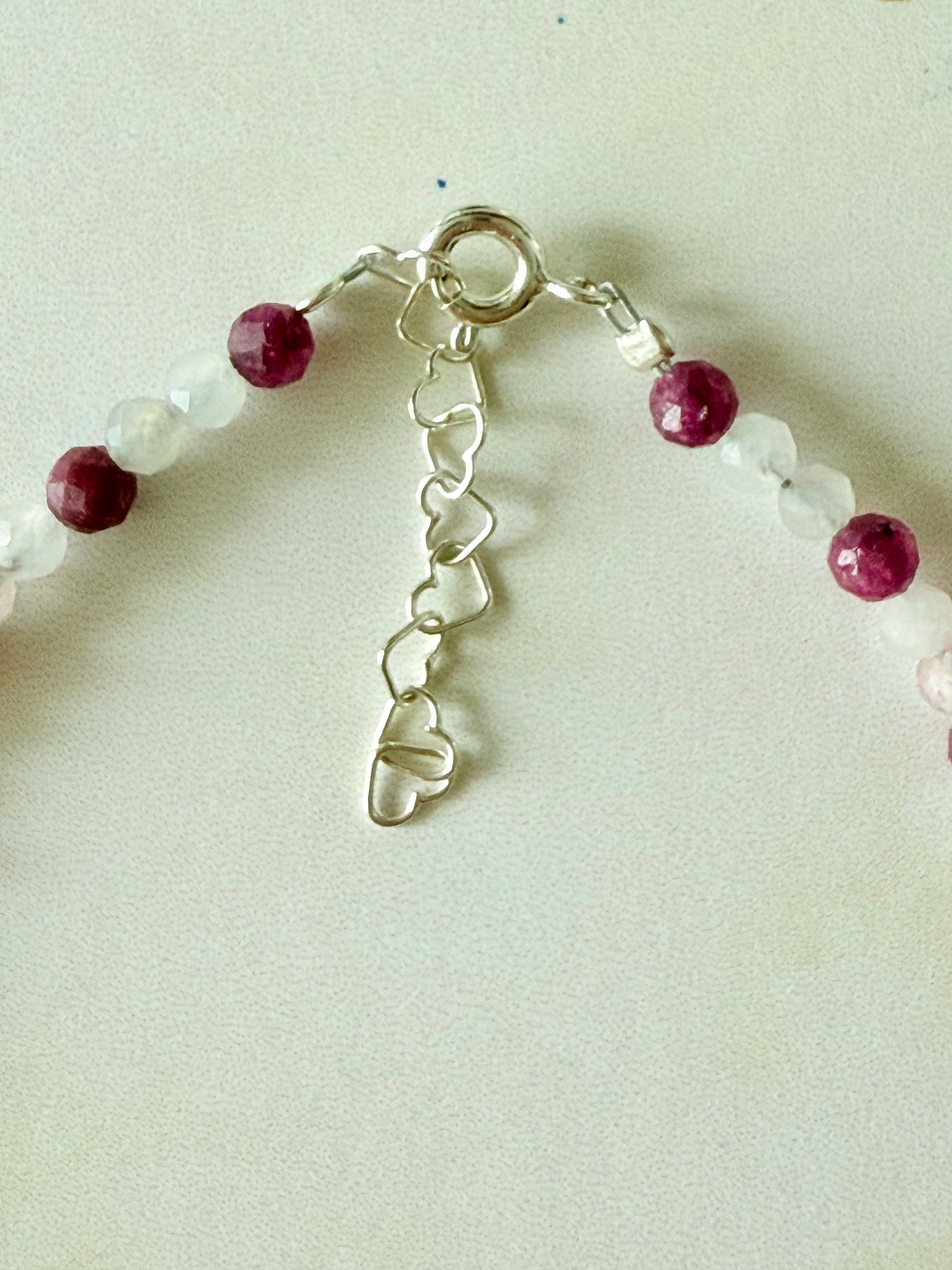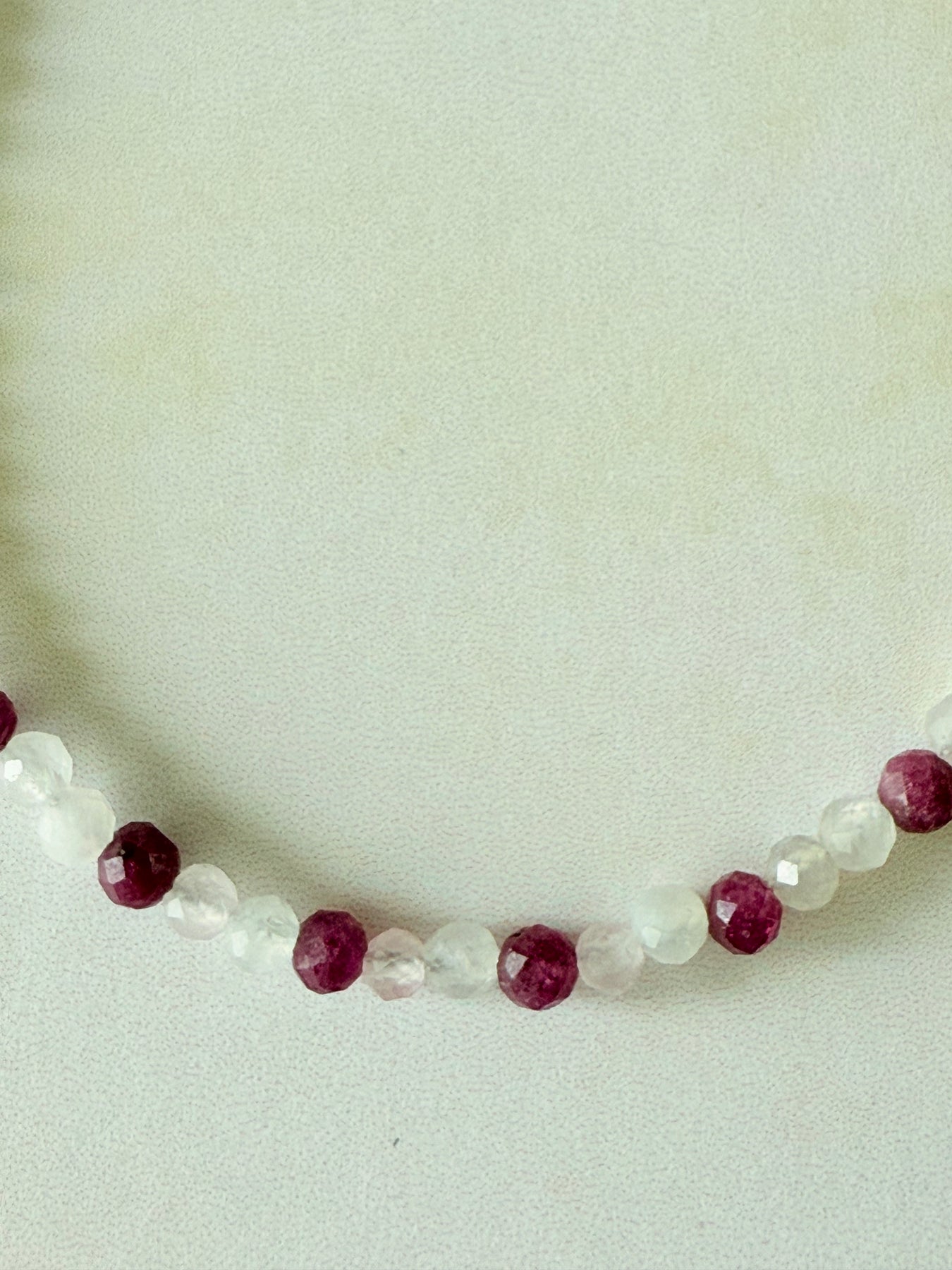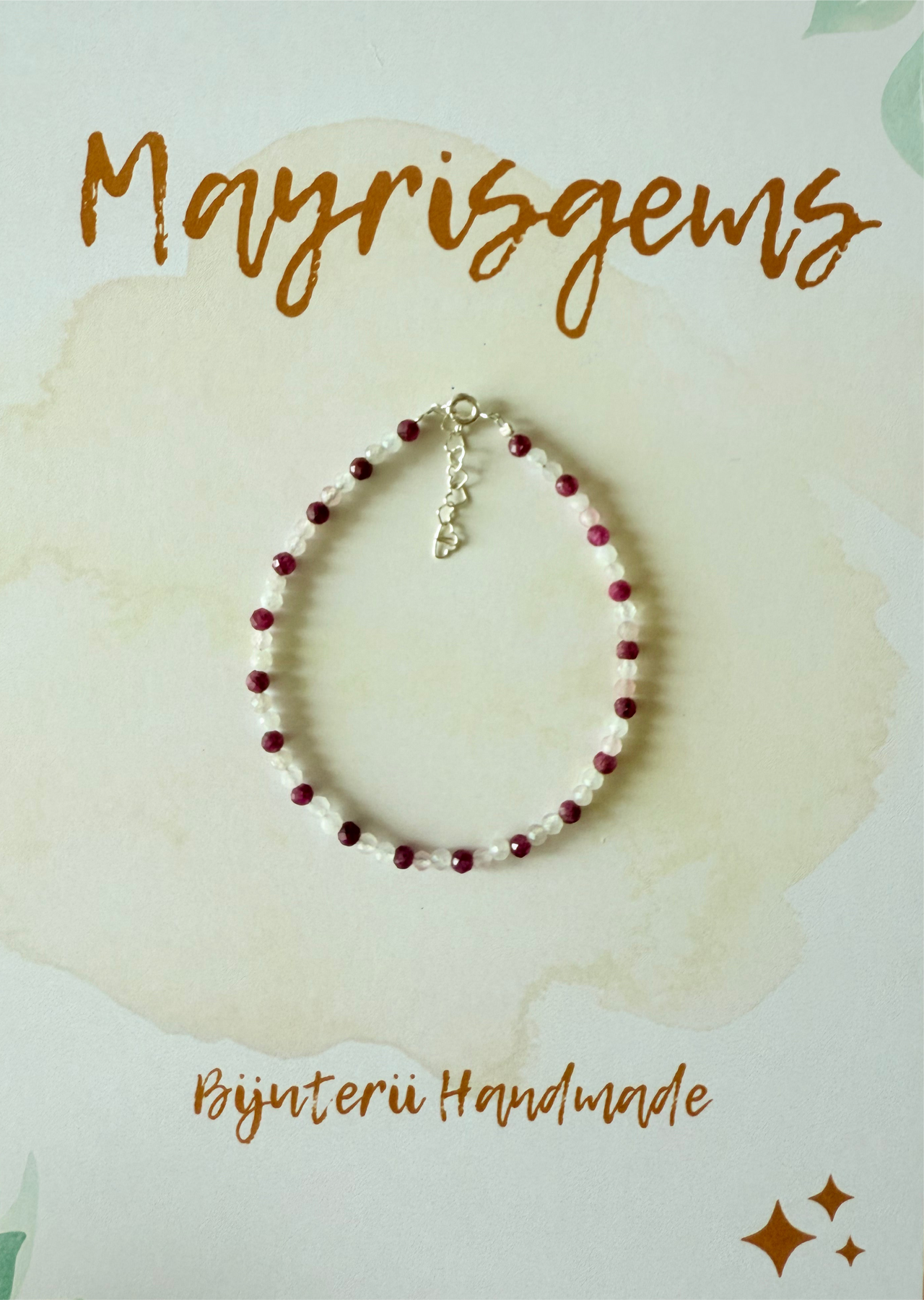 - Pietre: Rubin natural, Piatra Lunii, Cuarț Roz – rotund, 3 mm