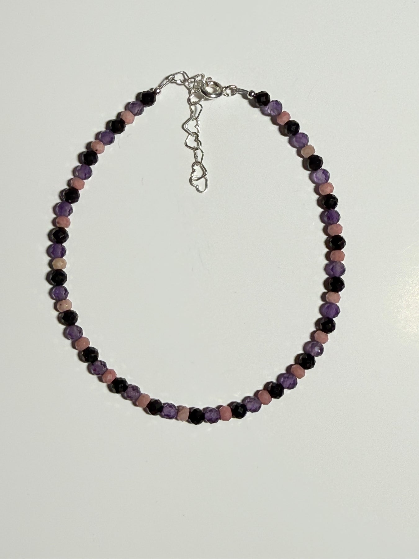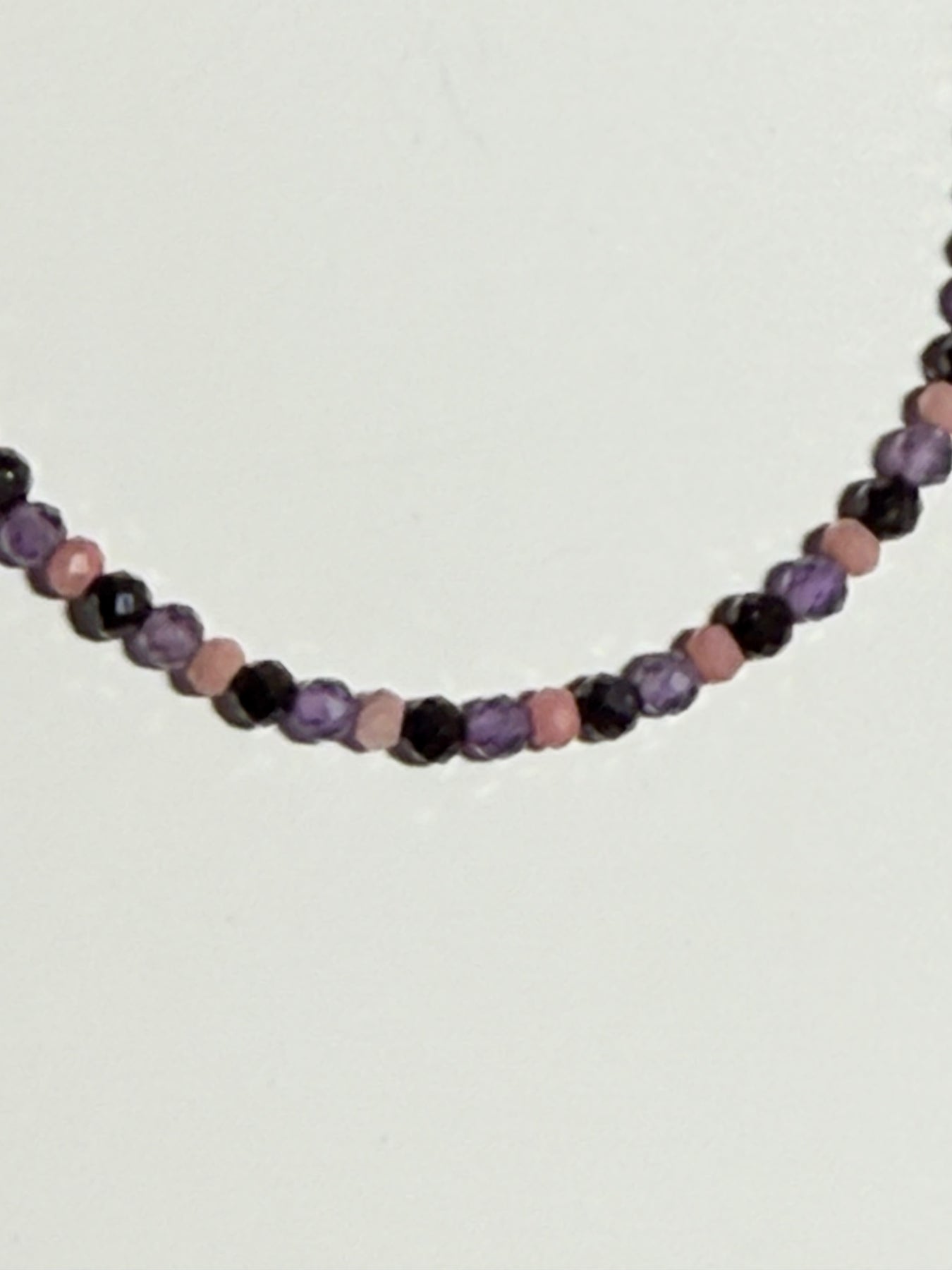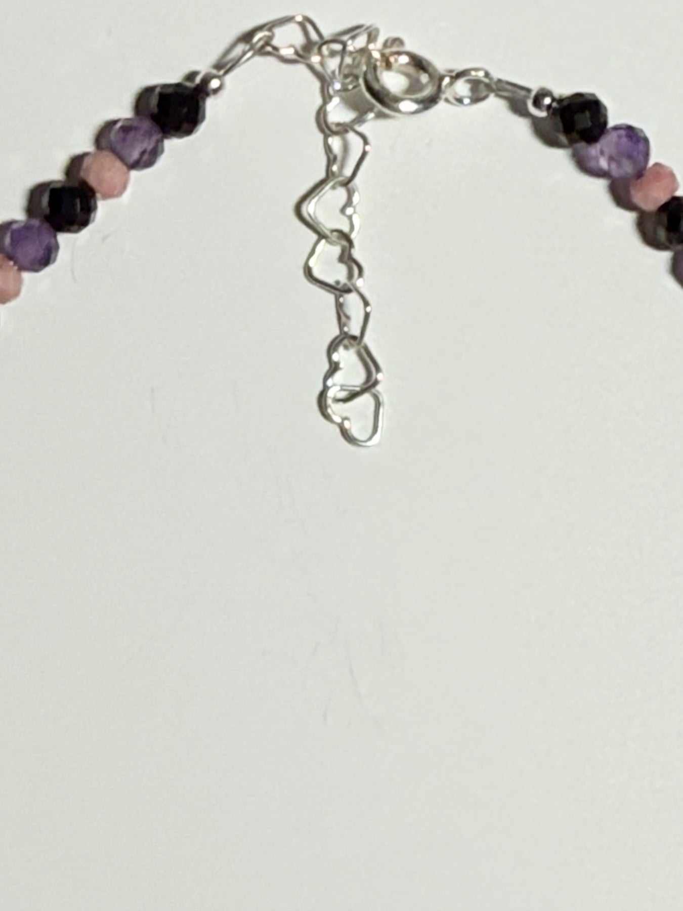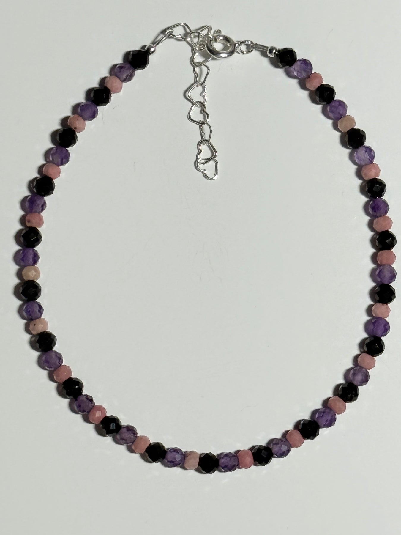 - Pietre: Obsidian, Rodonit, Ametist natural, rotund, 3 mm