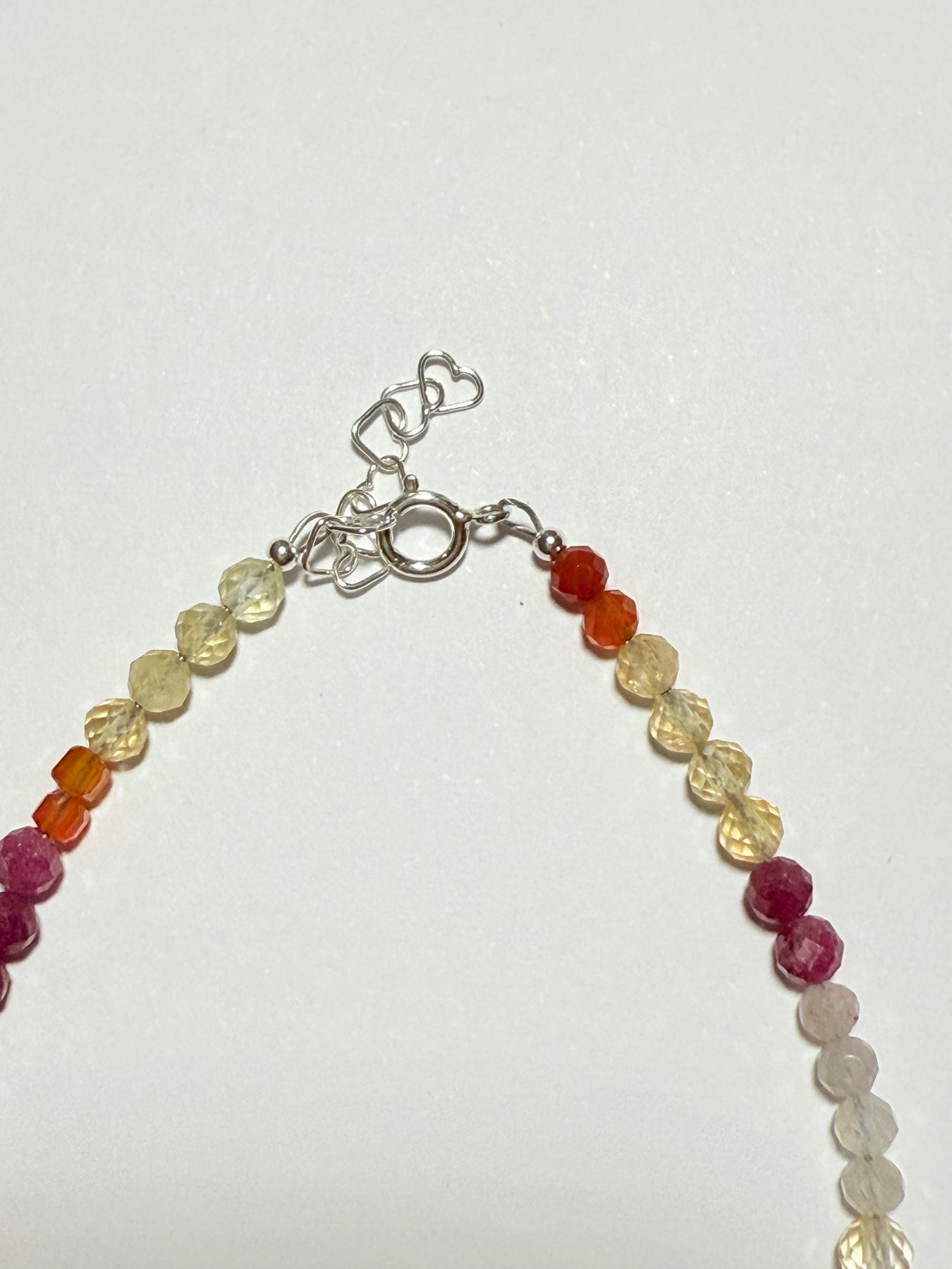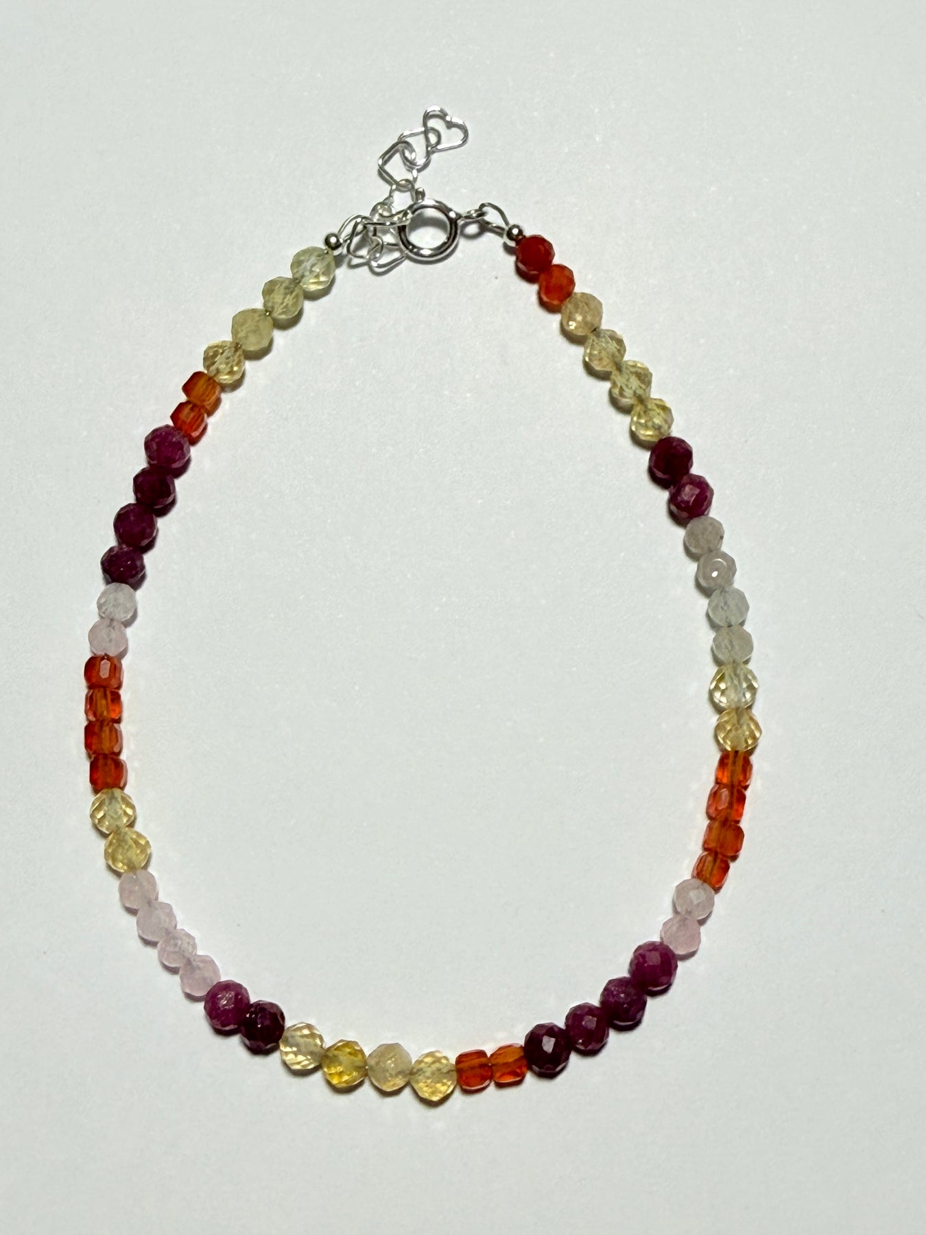 Brățara Mayris GEMS, inspirată de energia vibrantă a lunii Aprilie, este realizată manual din pietre naturale de 2-3 mm: Carneol, Citrin, Rubin, Cuarț Roz și elemente din Argint 925. Este o bijuterie fină, dar plină de viață, creată pentru a susține motivația, pasiunea, încrederea și iubirea – atributele lunii aprilie și ale celor care își doresc un nou început plin de forță și echilibru emoțional.