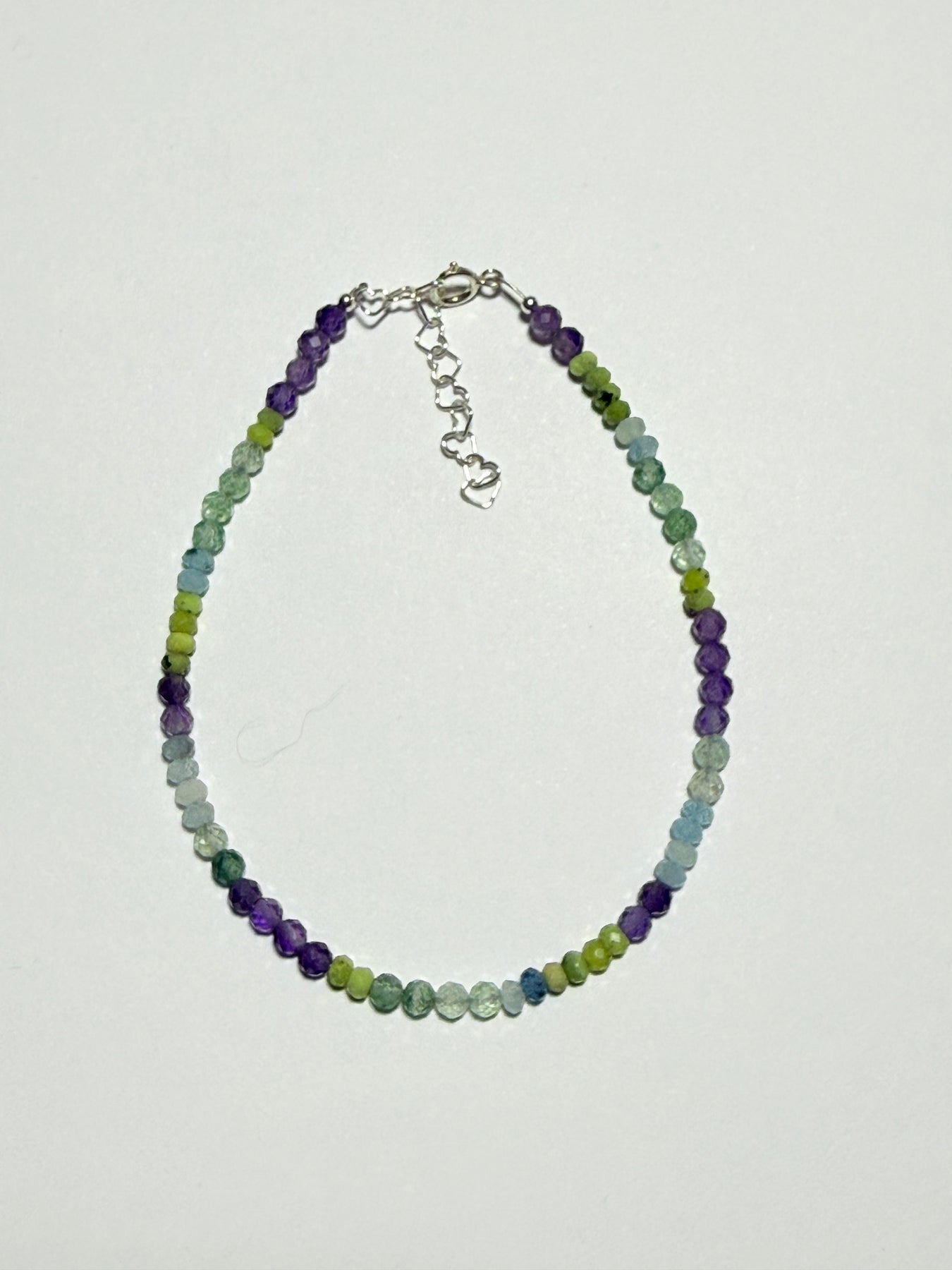 Brățara Mayris GEMS, dedicată lunii Februarie, este realizată manual din Ametist, Jad Verde, Aventurin Verde, Acvamarin și elemente din Argint 925, cu pietre naturale de 2-3 mm. Această combinație sprijină claritatea mentală, echilibrul emoțional, protecția spirituală și liniștea interioară. Creată pentru cei care își doresc să înceapă anul cu calm, încredere și energie pozitivă, brățara este delicată, rafinată și profund conectată cu vibrația lunii februarie.