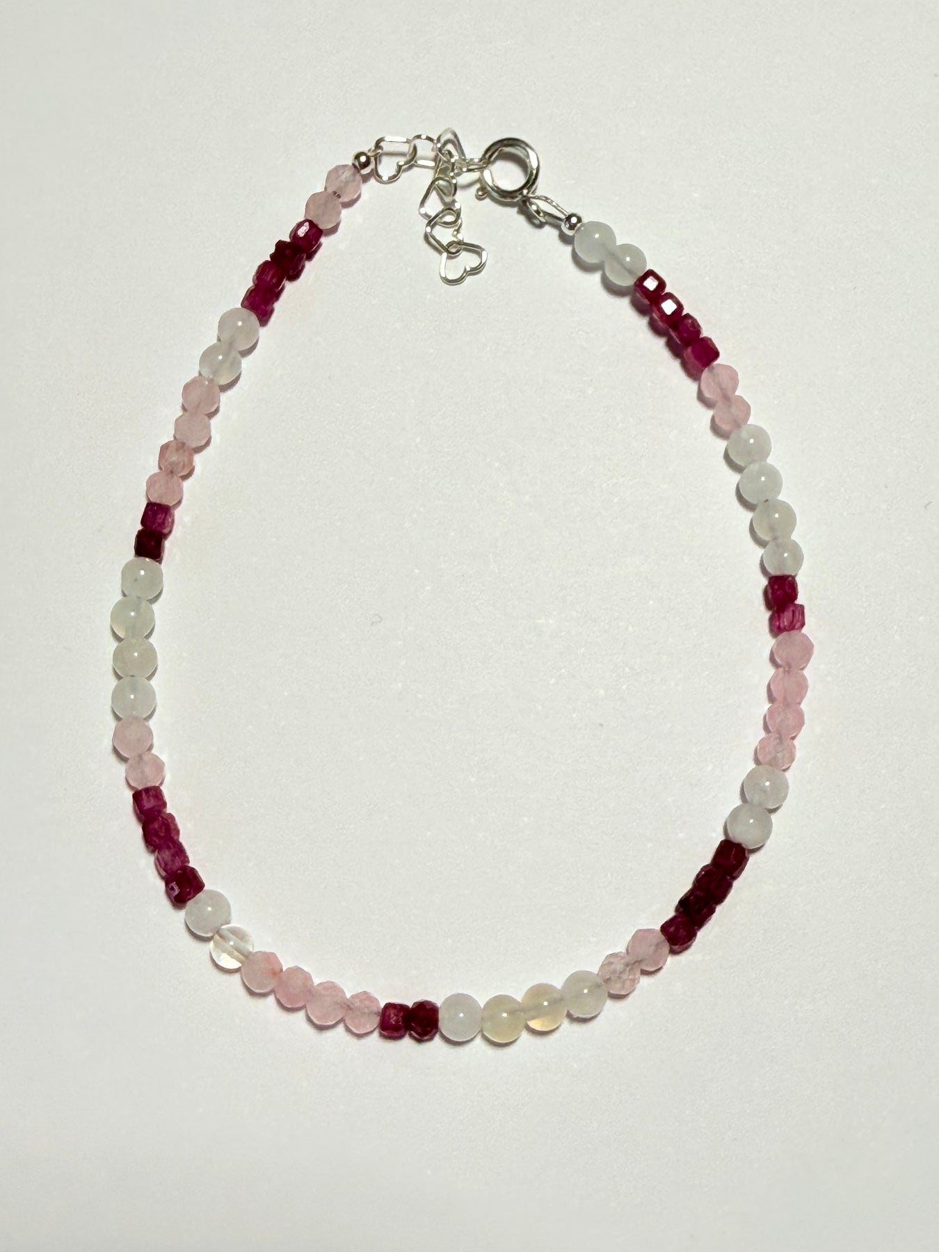 Brățara Mayris GEMS dedicată lunii Iulie este realizată manual din Rubin, Cuarț Roz, Piatra Lunii și Argint 925, fiind un talisman delicat pentru iubire, vitalitate, feminitate și protecție emoțională. Combinând energia pasională a rubinului cu blândețea cuarțului roz și intuiția pietrei lunii, această brățară este perfectă pentru cei care își doresc să trăiască cu inima deschisă, să-și exprime emoțiile cu încredere și să atragă armonie în viața lor.