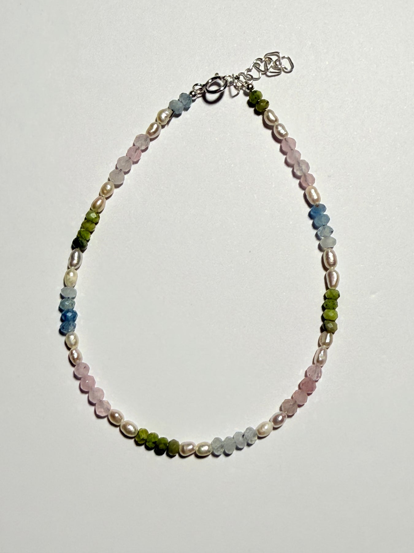 Brățara Mayris GEMS, dedicată lunii Iunie, este realizată manual din pietre fine de 2-3 mm: Acvamarin, Perle naturale de cultură, Jad, Cuarț Roz și elemente din Argint 925. Această bijuterie elegantă și delicată sprijină energia blândă și sensibilă a lunii Iunie, aducând feminitate, liniște emoțională, iubire și armonie interioară. Este un talisman perfect pentru cei născuți în această lună, dar și pentru oricine caută o brățară subtilă cu energie curată și rafinament.