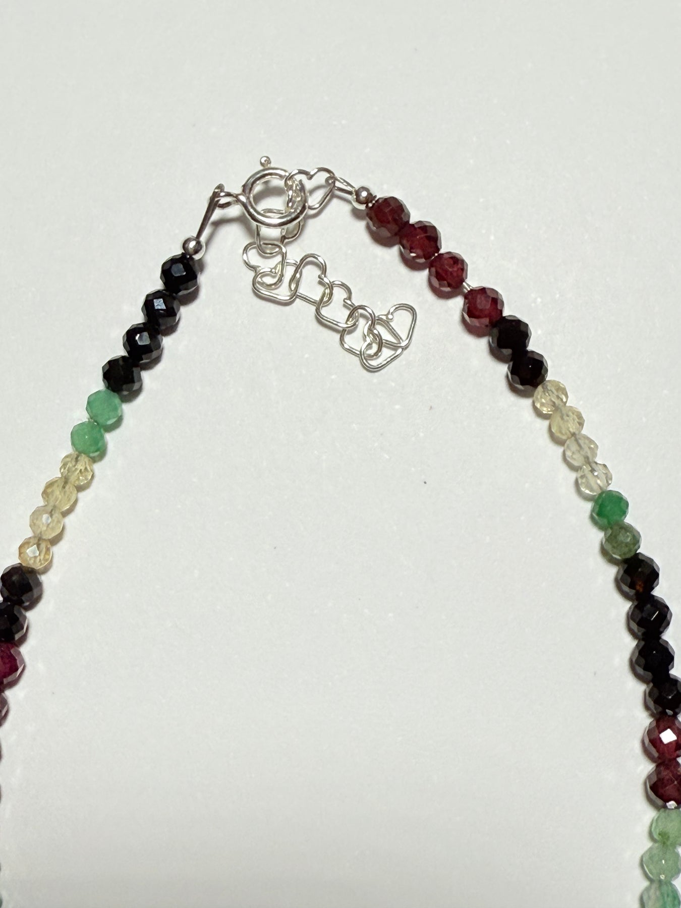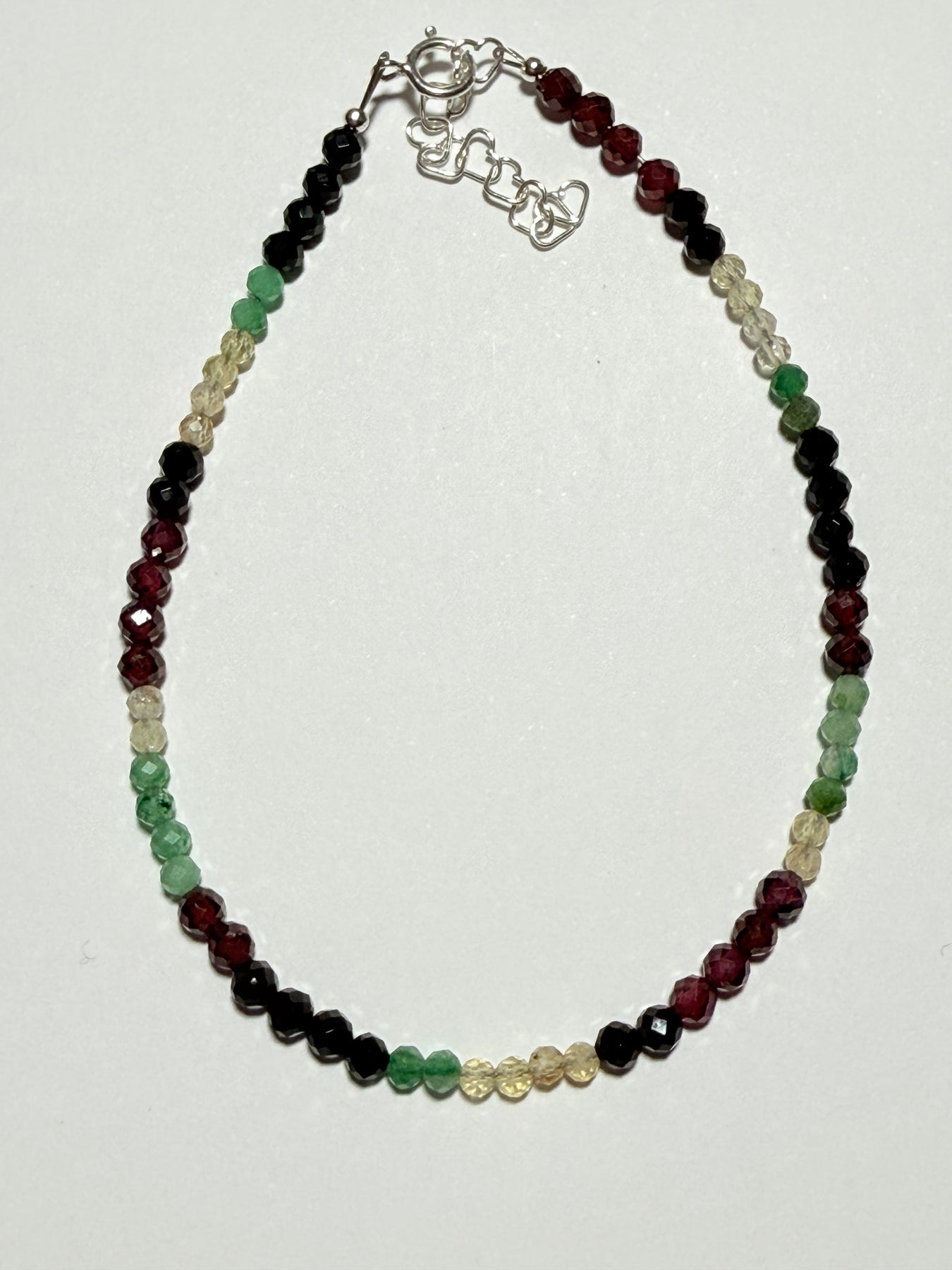 Brățara Mayris GEMS, creată pentru a reflecta energia stabilă și înfloritoare a lunii Mai, este realizată manual din pietre naturale de 2-3 mm: Smarald, Granat, Onix Negru, Citrin, completate cu elemente din Argint 925. O bijuterie elegantă și simbolică, ce sprijină abundența, încrederea în sine, iubirea și echilibrul interior. Este talismanul ideal pentru cei care își doresc protecție, vitalitate și prosperitate în această lună a înfloririi personale.