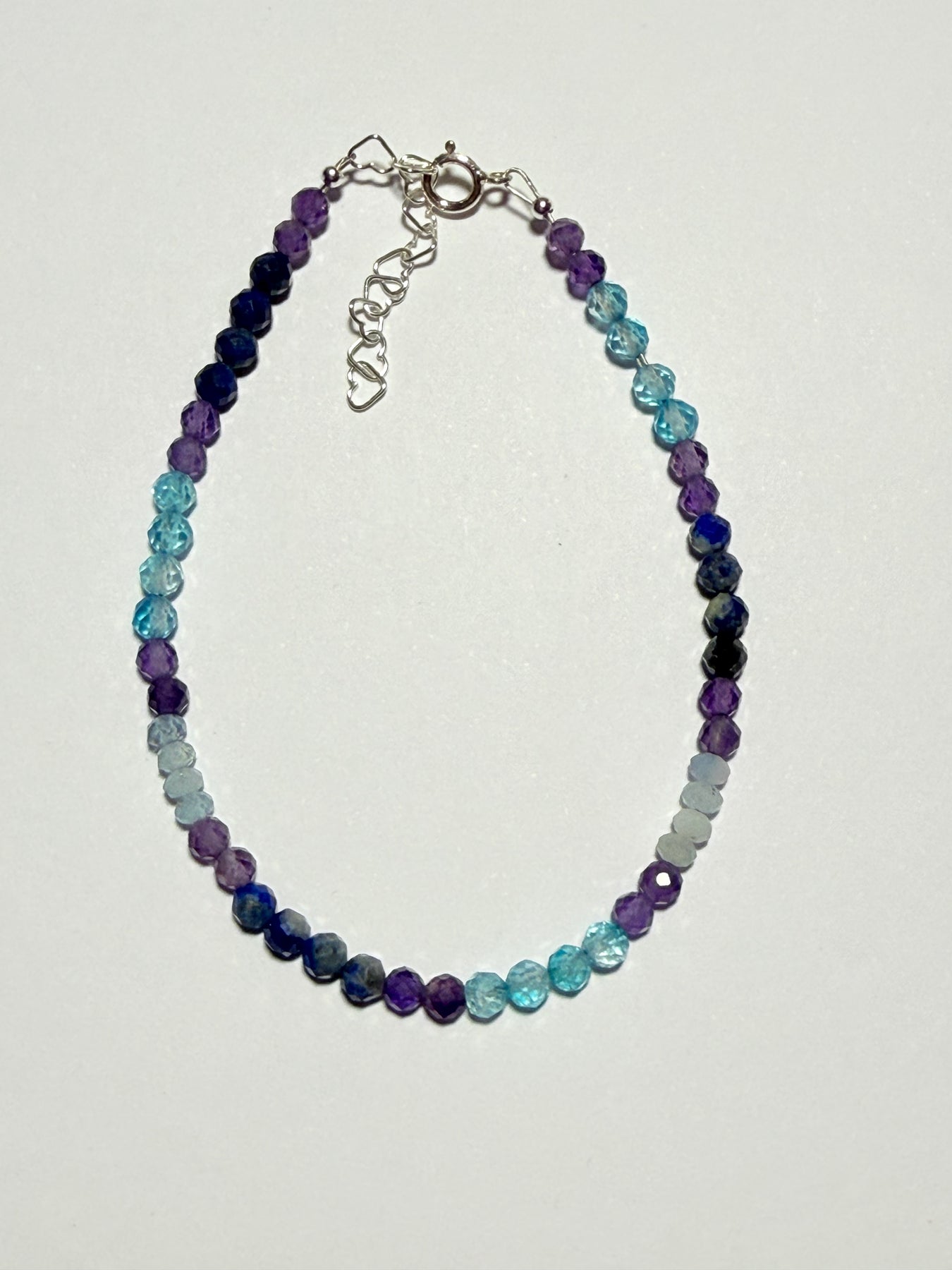 Brățara Mayris GEMS, dedicată lunii Martie, este realizată manual din Blue Topaz, Ametist, Lapis Lazuli, Acvamarin și Argint 925 – o combinație delicată, spirituală și echilibrată. Simbol al clarității mentale, comunicării sincere și echilibrului emoțional, această brățară este ideală pentru cei care își doresc un nou început plin de inspirație, liniște și protecție. Cu pietre naturale de dimensiuni fine (2-3 mm), se potrivește perfect stilului minimalist și elegant.
