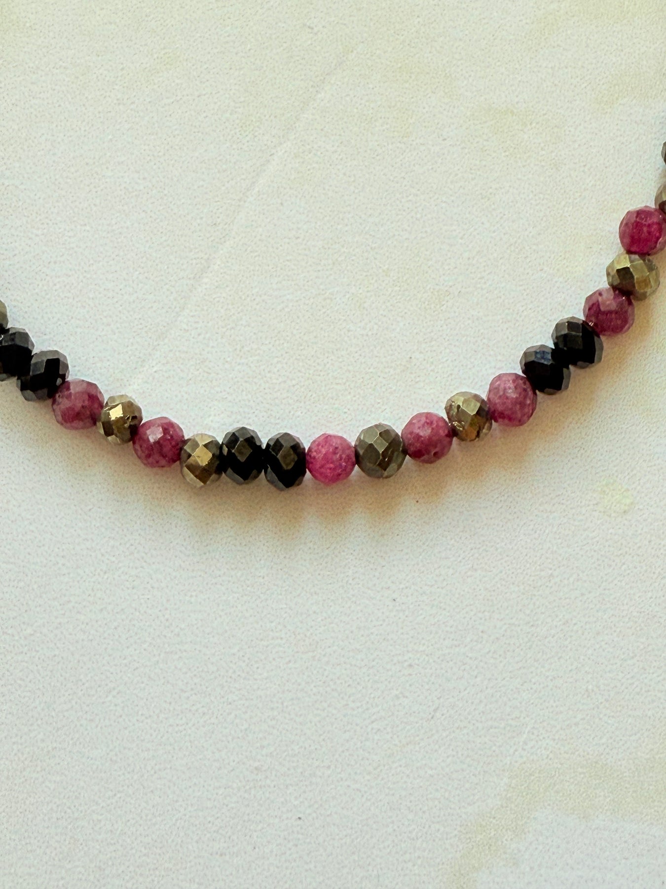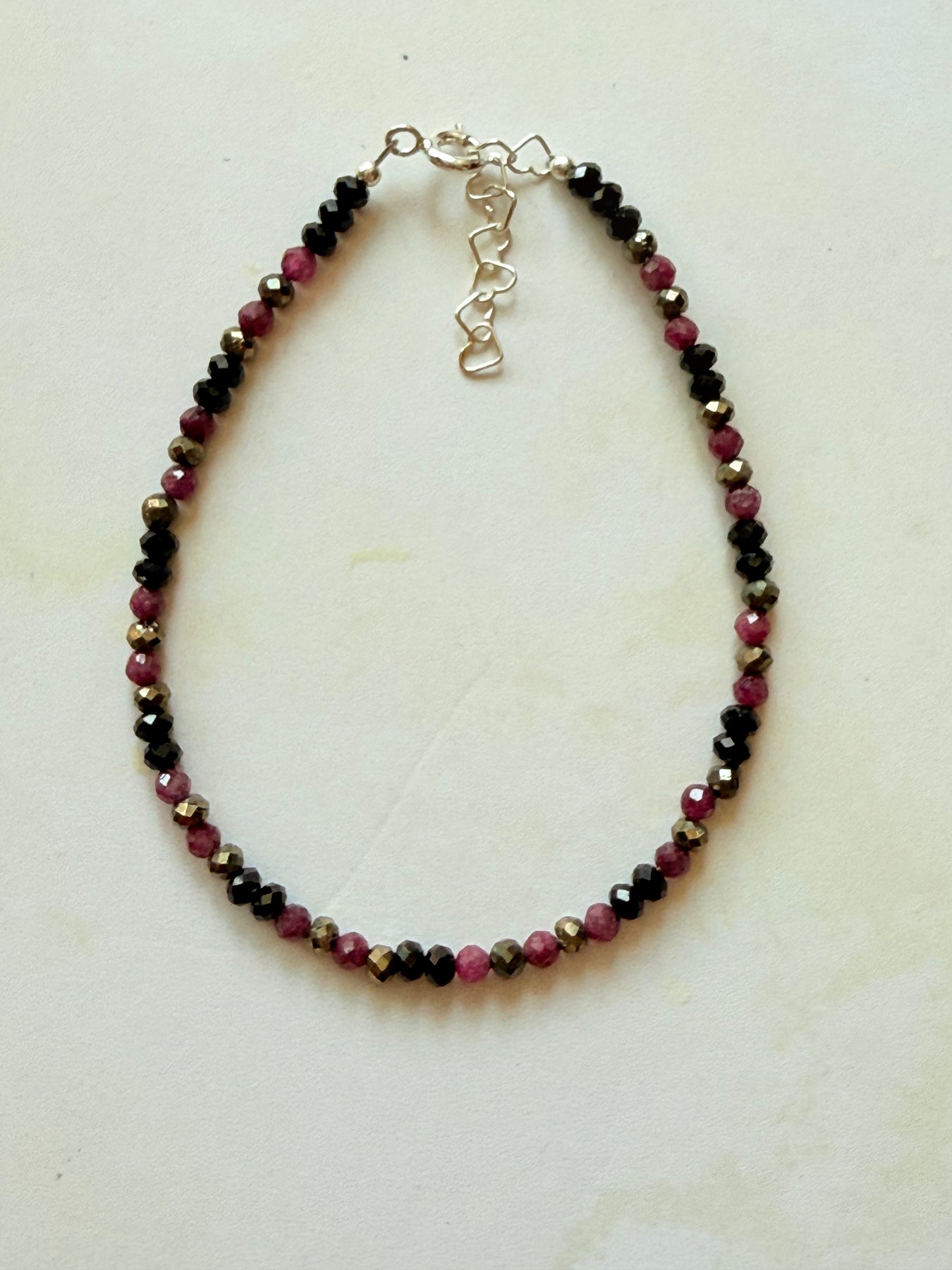 Concepută pentru Capricornul ambițios și determinat, această brățară fină pentru carieră și succes profesional este realizată manual cu Rubin, Pirita și Onix Negru – o combinație intensă pentru cei care construiesc cu răbdare, dar și cu viziune. Cu pietre naturale de 3 mm și elemente din argint 925, este o bijuterie energizantă, elegantă și plină de forță interioară.