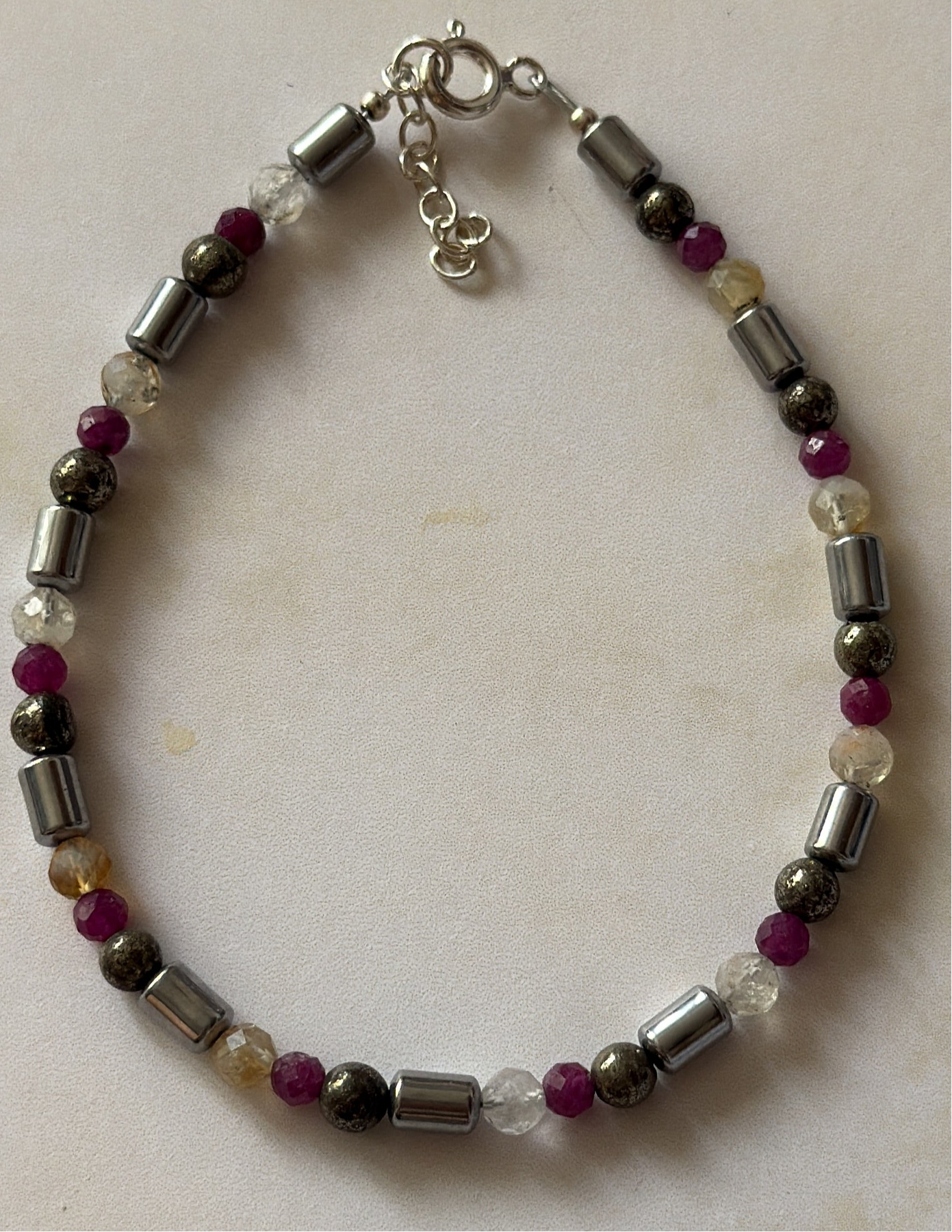 Pietre naturale: Rubin brut & fațetat, Hematit, Citrin, Pirita – dimensiuni variate 4–6 mm