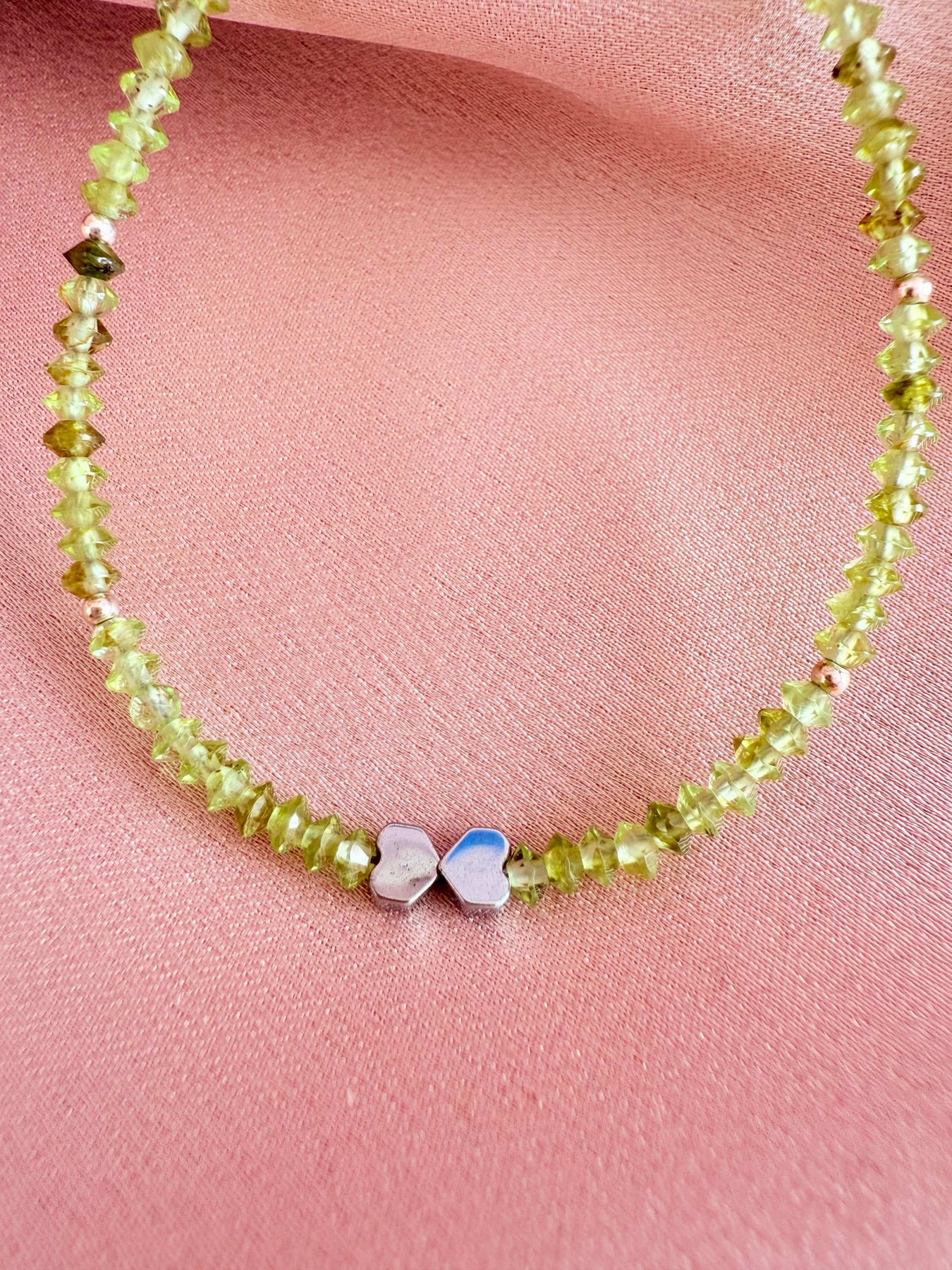 Brățara Mayris GEMS din Peridot și Hematit este un accesoriu și plin de energie pozitivă, creat pentru a vă îngriji elegant de succes, claritate mentală și protecție împotriva energiilor negative. Peridotul , cunoscut ca „piatra prosperității”, atrage abundența și oportunitățile, în timp ce Hematitul oferă stabilitate și întărește voința interioară. Această brățară este ideală pentru oricine caută un echilibru între minte, trup și spirit.